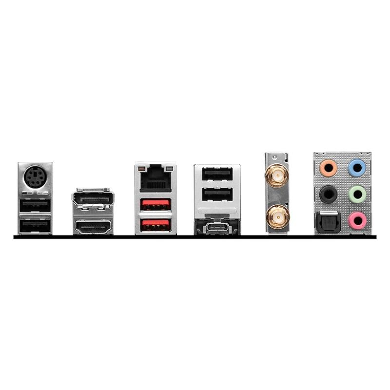 – 2 x conectores de alimentación (CPU_PWR) – 1 x ventilador de CPU – 1 x ventilador de bomba – 5 x ventiladores del sistema – 2 x Panel frontal (JFP) – 1 x intrusión de chasis (JCI) – 1 x audio frontal (JAUD) – 1 x puerto de impresora (JLPT) – 1 x puerto COM (JCOM) – 1 x conector TBT (JTBT, compatible con RTD3) – 2 x conectores LED RGB V2 direccionables (JARGB_V2) – 1 x conector LED RGB (JRGB) – 1 x cabezal de pin TPM (compatible con TPM 2.0) – 4 x USB 2.0 – 2 x USB 3.2 Gen1 Tipo A – 1 x USB 3.2 Gen1 Tipo C Panel E/S Trasero – Teclado / Ratón |